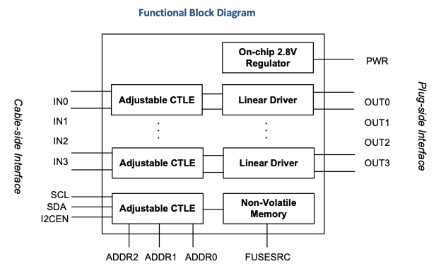 Its high linearity preserves line rate adjustment, transmit pre-emphasis and other dynamics, remaining transparent to system link training algorithms.